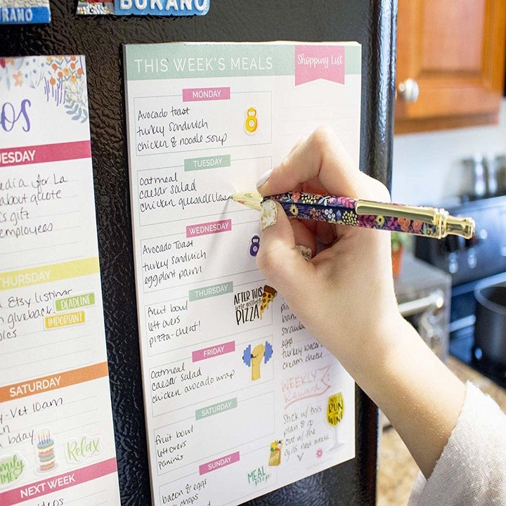 Promising review: "I honey this meal planner and shopping list! In my business firm, it was constantly 'what do you want to eat' 'what practice we take' blah apathetic etc. At present, I can lay out the week's meals, and get my shopping list prepared so I make sure I don't miss anything at the grocery store. The magnet on the back is stiff and holds it to the fridge perfectly, fifty-fifty with the door opening and closing constantly. The perforation is good, and doesn't stray off into the paper like some cheaper papers do. Will be ownership once again when my current i gets low." —Haley